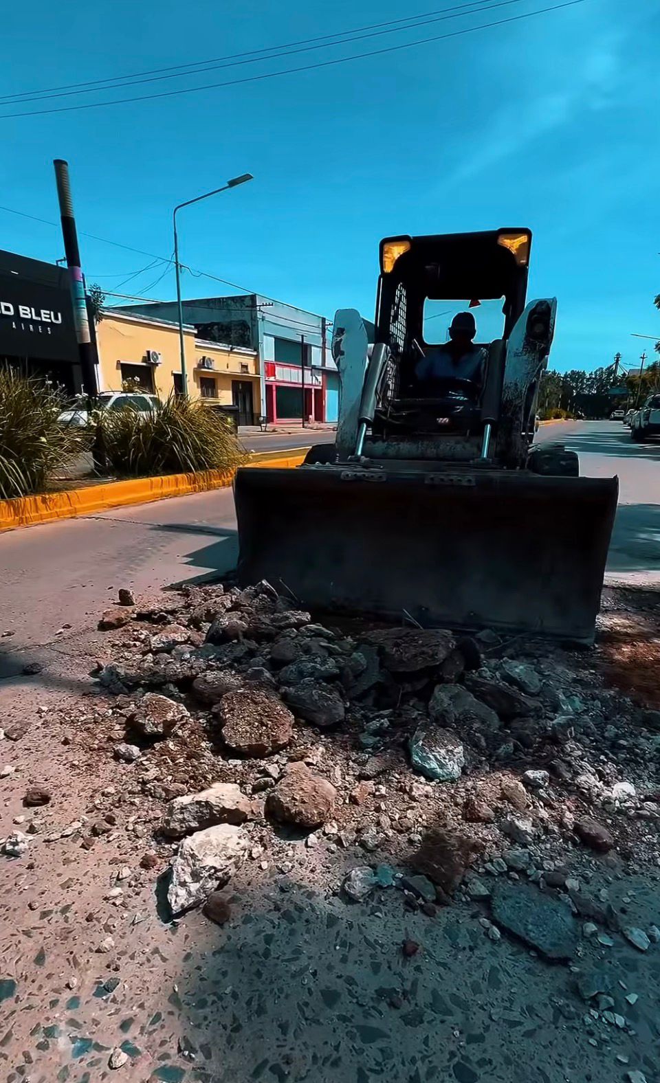Personal del área de Servicios Públicos de la Municipalidad está llevando a cabo tareas de bacheo profundo en Avenida Merlassino, entre Avenida Belgrano y calle Roca, con la colocación de hormigón.