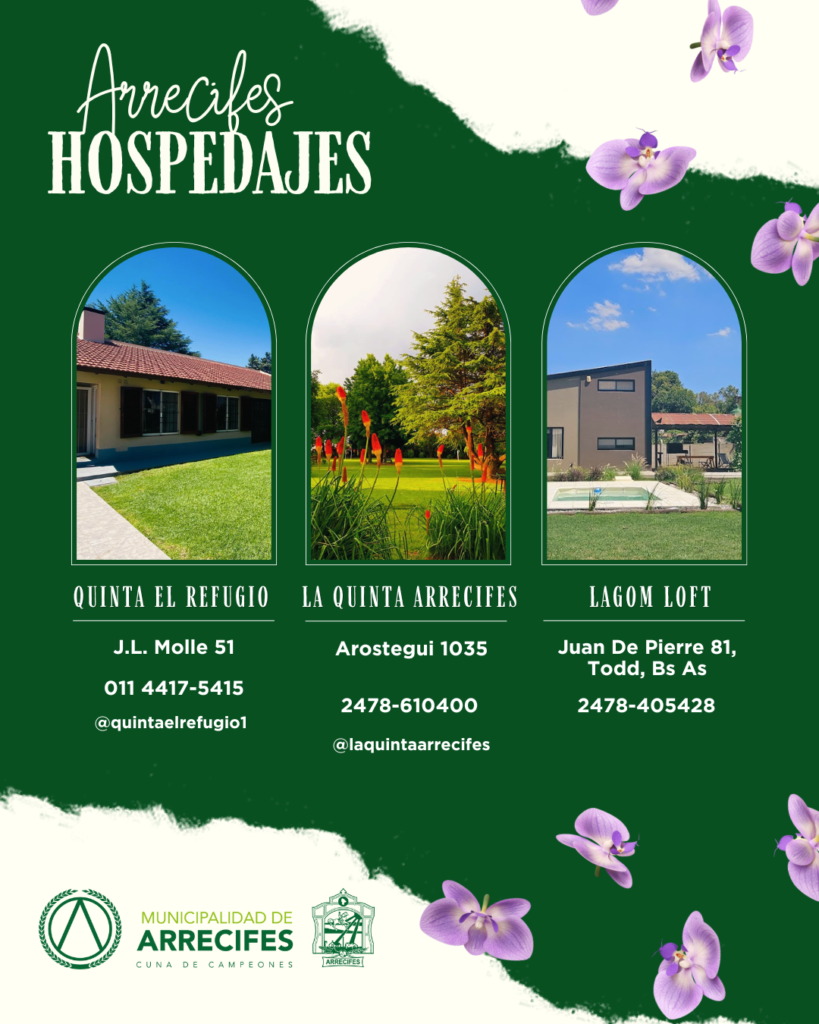 Arrecifes, una ciudad con historia, cultura y muchos eventos por venir. Si estás pensando en visitarnos, te contamos que tenemos una variada oferta de hospedaje para hacer tu estadía más cómoda y placentera. Con eventos destacados en puerta, Arrecifes se prepara para recibirte con los brazos abiertos.