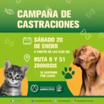 Este sábado 20 de enero, en la casilla del área de Zoonosis de la Municipalidad, ubicada en el cruce de rutas 8 y 51, se llevará a cabo una nueva jornada de castraciones gratuitas para perros y gatos. Será a partir de las 08:00, por orden de llegada, y en esta oportunidad se brindará un…