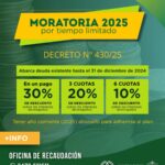 La Municipalidad de Arrecifes informa que, mediante el Decreto N° 430/25, se estableció un Plan Especial de Regularización y Cancelación de Deudas por tributos vencidos al 31 de diciembre de 2024. Este plan incluye la posibilidad de regularizar tasas, derechos, contribuciones, intereses, multas y recargos correspondientes a los años 2020 al 2024. Vigencia del plan:…