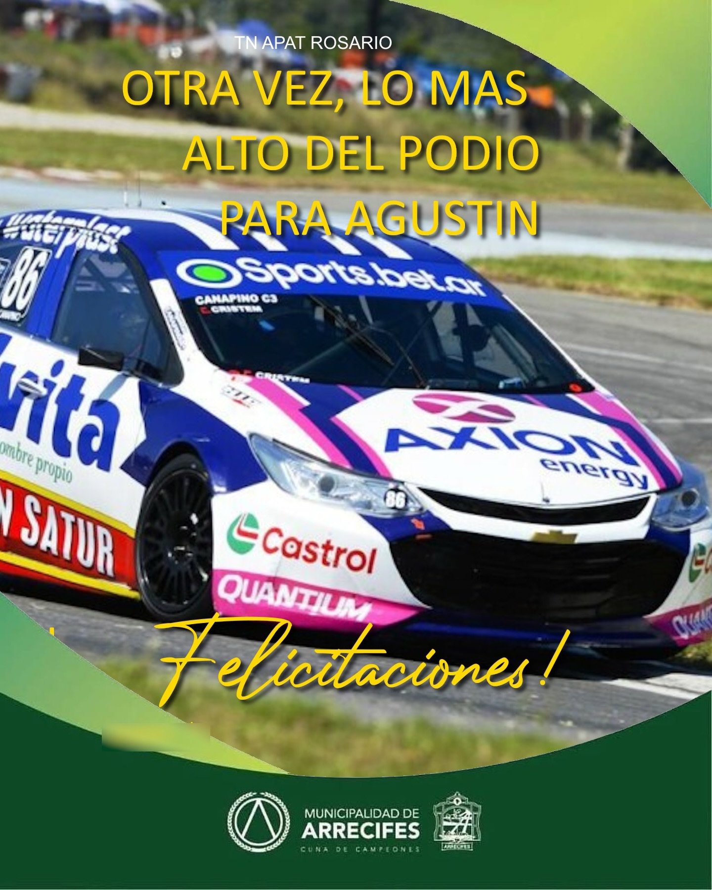 La Municipalidad de Arrecifes felicita una vez más a Agustín Canapino. Otra vez… y van.