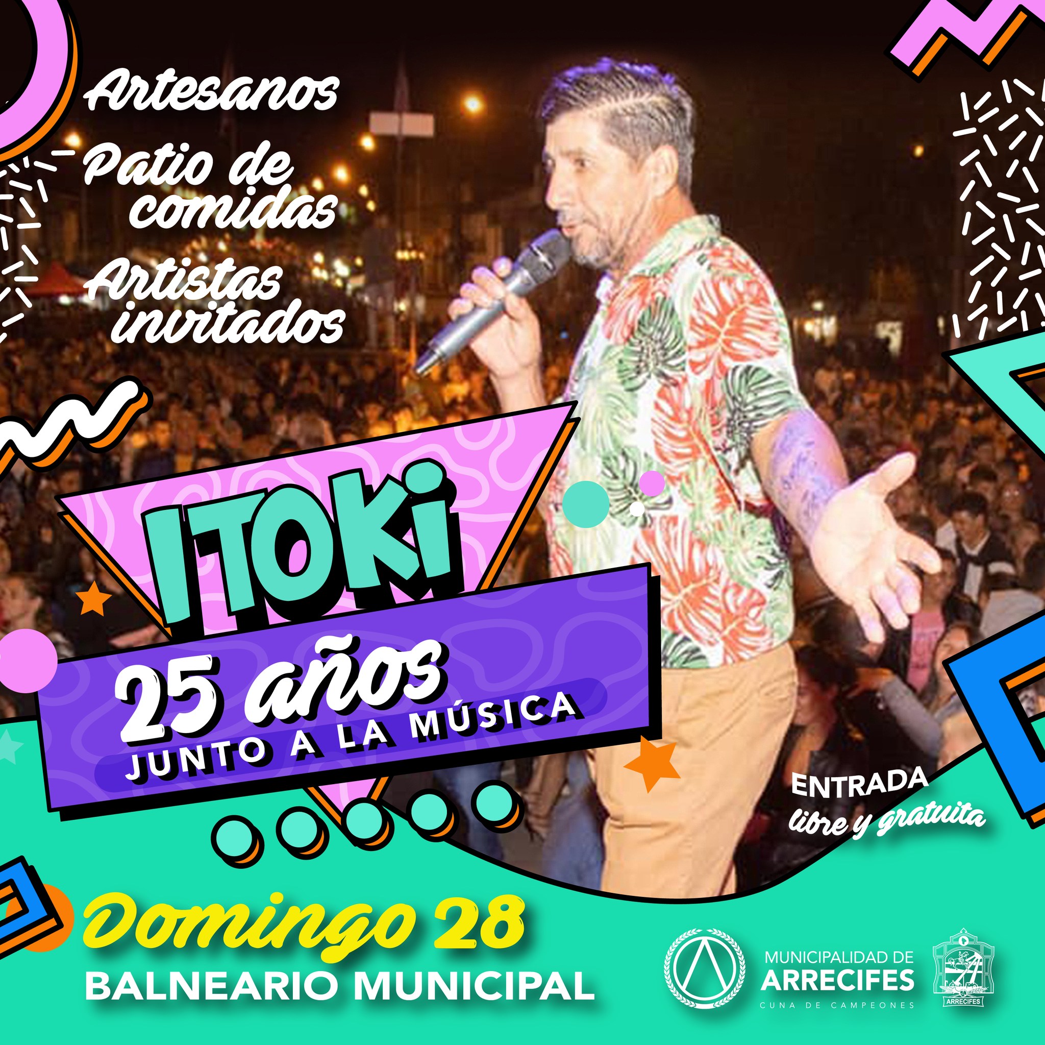 Con entrada libre y gratuita, y el auspicio de la Dirección de Cultura de la Municipalidad, el show dará comienzo a las 19:00 horas; Itoki llega con su música y alegría al verano arrecifeño para pasar un domingo a pleno ritmo