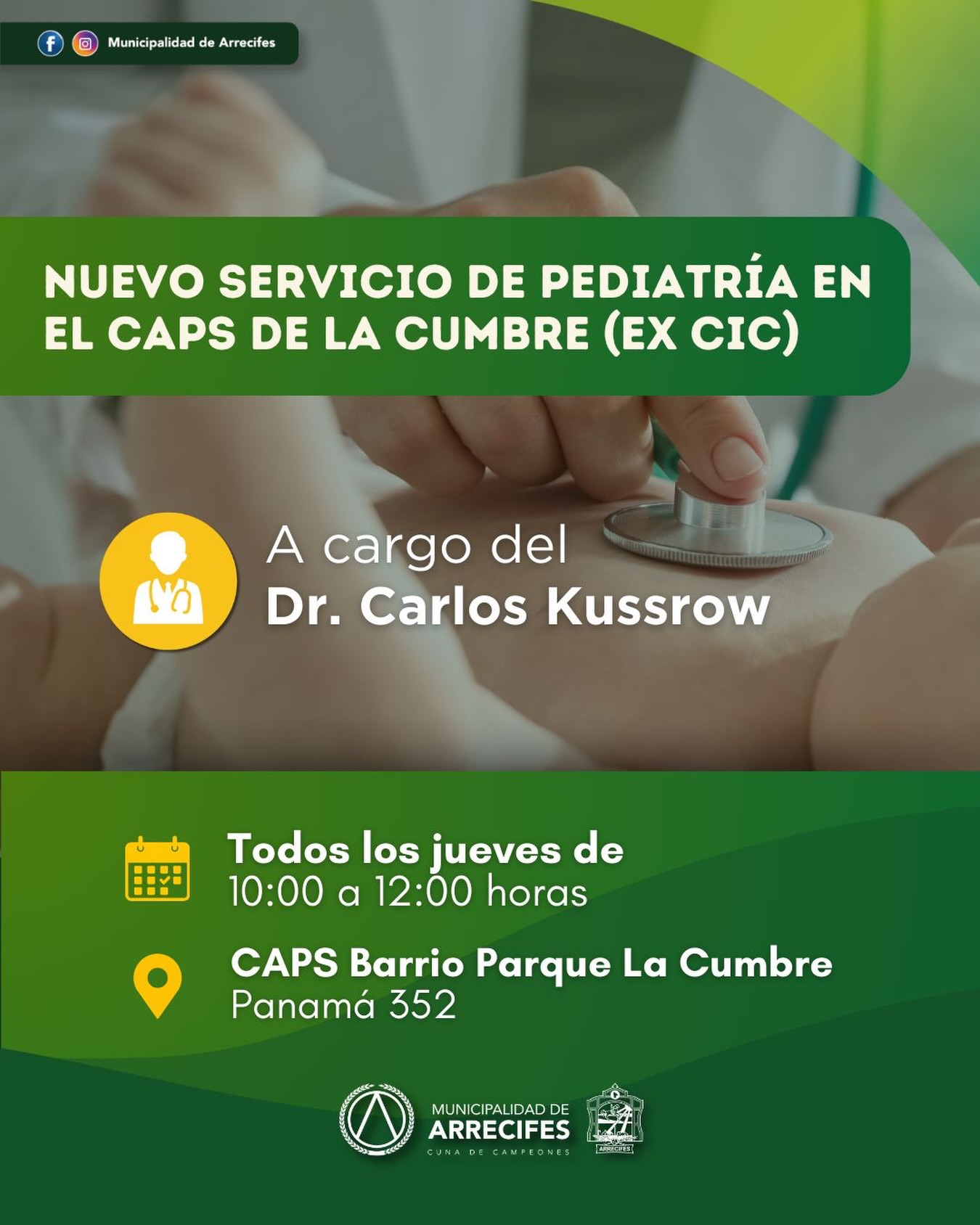 En esta oportunidad, el CAPS de La Cumbre incorpora a partir del mes de marzo el servicio de Pediatría con la atención del Dr. Carlos Kussrow.