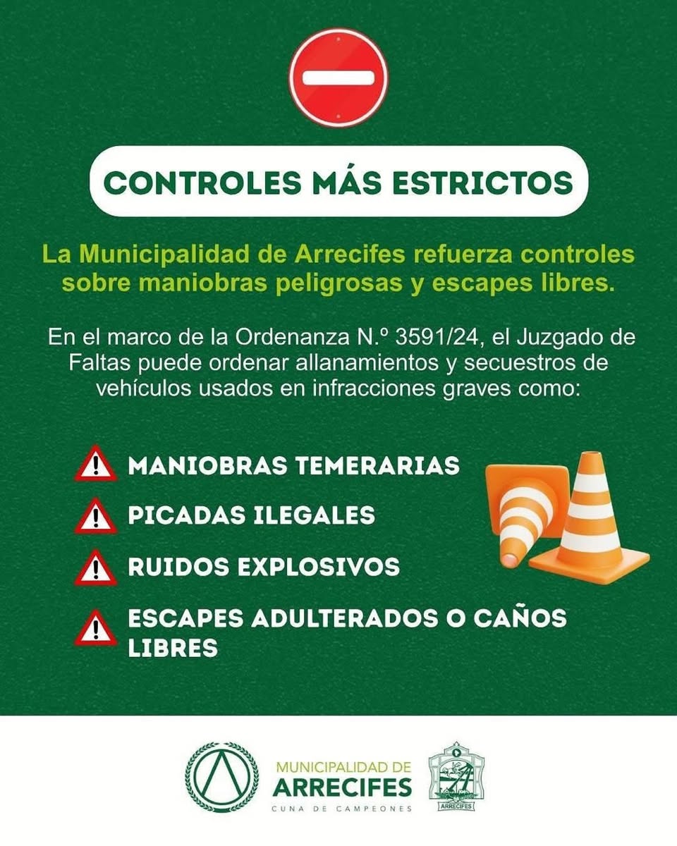 La Municipalidad de Arrecifes recuerda la vigencia de la Ordenanza N° 3127/19, que prohíbe la circulación de tránsito pesado (camiones, carros, acoplados, entre otros) en caminos de tierra abovedados, luego de las lluvias.
