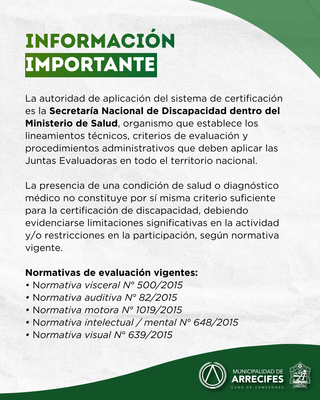 La Dirección de Discapacidad de la Municipalidad informa que: